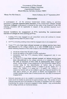 The much awaited G.O has been published today, on 21st Sept. 2010, separately for Govt. & Non-Govt. Colleges at 4.45 pm. All the existing part time teachers will remain in service till the age of 60. Please wait patiently till the G.O is published in our Website, for this may require some time.